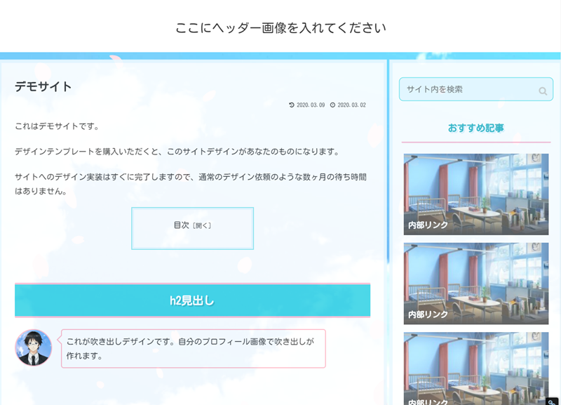 詳しくは『デザインテンプレート』の別ページにて、実際にテンプレートを実装したデモサイトもご用意しています。