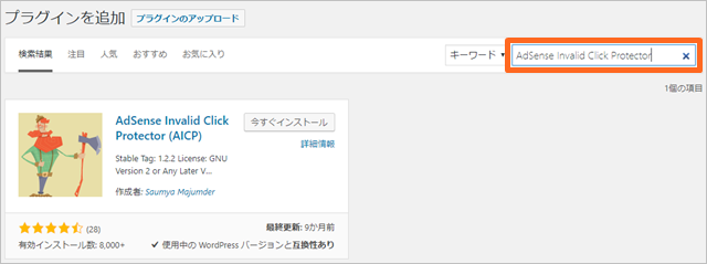 検索窓に追加したいプラグインを入力すると、自動で検索が始まります。