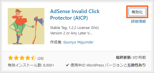 インストールが完了するとプラグインを有効化のボタンが表示されるので、そちらをクリックします。