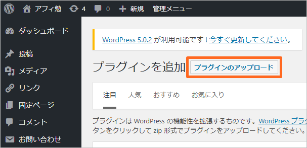 プラグインのアップロードをクリックします。