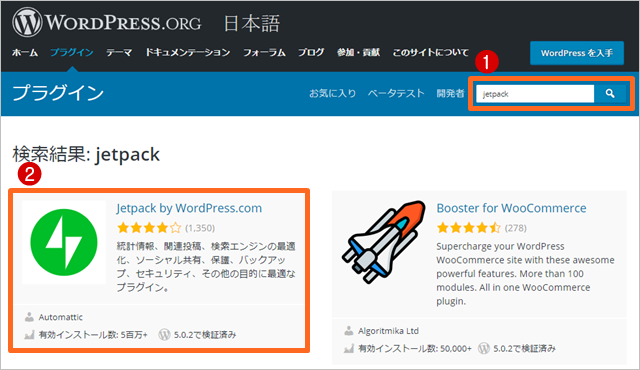 まずは、WordPressのプラグイン検索ページで追加したいプラグインを検索して、該当のプラグインを選択します。