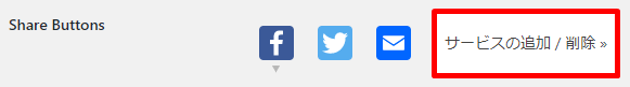 デフォルトで「Facebook」「Twitter」「メール」アイコンが表示されていますが、更にアイコンを追加したい場合にはサービスの追加/削除をクリックします。
