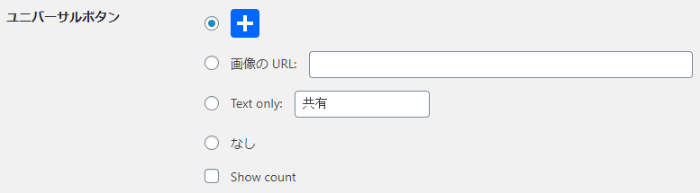 メニューのオプションにチェックを付けることで、クリックしないとユニバーサルボタンのシェアボタンは表示されなくなります。