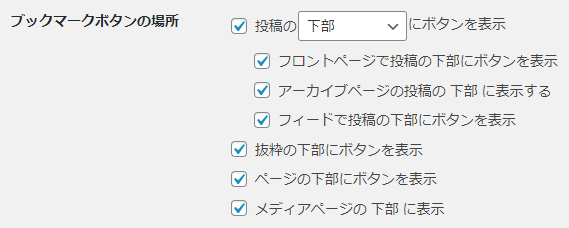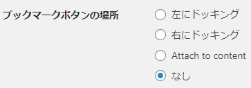 ブックマークボタンの場所では、シェアボタンを設置する場所を設定します。