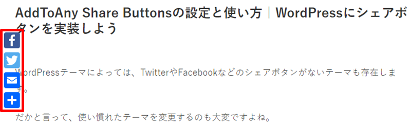 AddToAnyでは、標準で投稿や固定ページの本文下にシェアボタンを簡単に追加できます。
