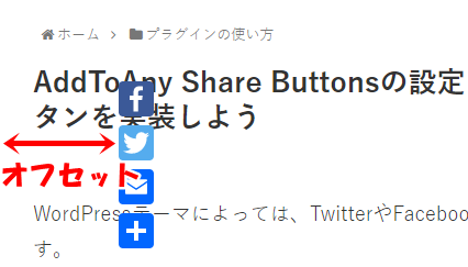 オフセットでは、シェアボタンの横の位置を変更することができます。