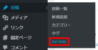 プラグインの有効化が完了したら、投稿の中にあるAd Unitsをクリックします。
