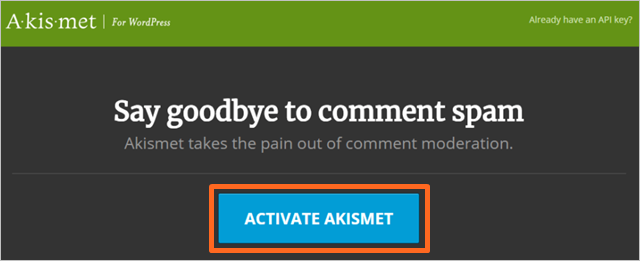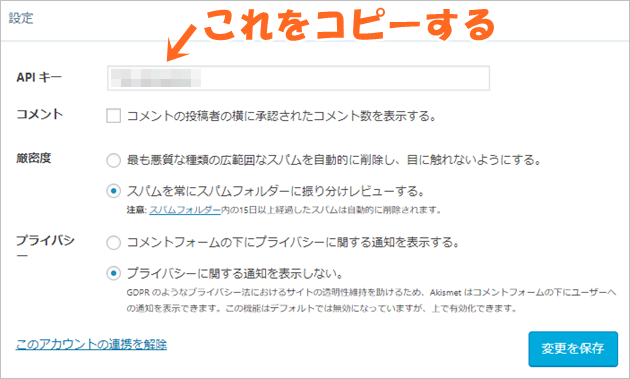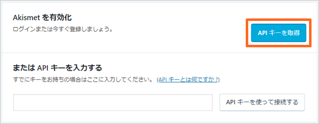 Akismetを利用する際には、APIキーの入力が必要となります。
