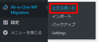 引っ越し元ブログのダッシュボードにアクセスし、All-in-One WP Migrationの中にあるエクスポートをクリックします。