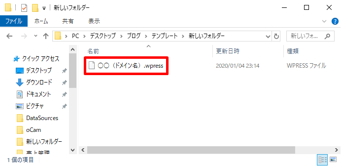 PC内に.wpressの拡張子のデータがダウンロードされます。