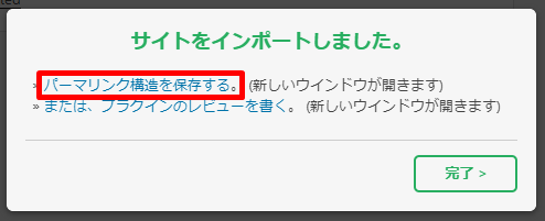 パーマリンク構造を保存しないと投稿ページが全て404エラーになるので、.wpressデータのインポート後は必ずパーマリンク構造の保存が必要です。