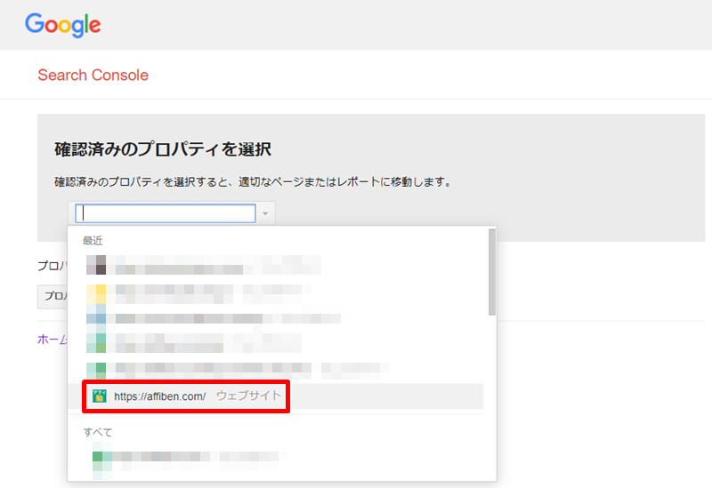 GoogleのURL削除ツールを開き、プロパティで引っ越し元のブログを選択します。※事前にSearch Consoleへの登録が必要です