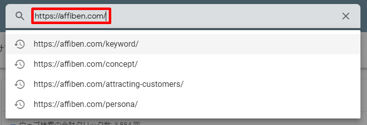 次に、Search Consoleに移動して、画面上部の検索窓に引っ越し先ドメインのトップページのURLを入力します。※事前にSearch Consoleへの登録が必要です