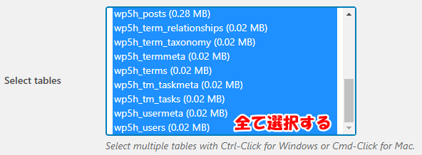 ブログ内のすべてのデータの文字列を置き換えたいのであれば、全て選択しましょう。