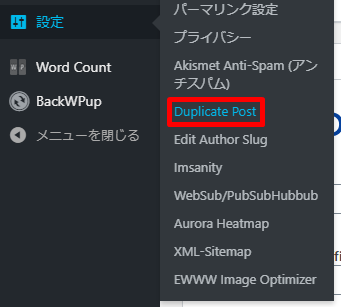 1. WordPress管理画面から「設定」→「Duplicate Post」を選択します。