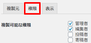 次に、権限のタブメニューの設定を見ていきましょう。