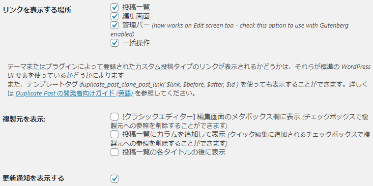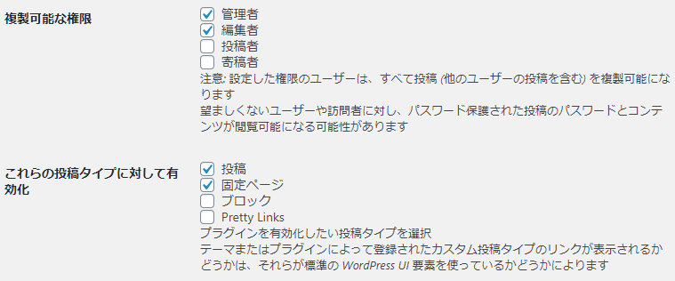 Duplicate Postの主要な設定