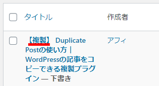 例えば、タイトルの接頭辞に【複製】と入力しておけば、どちらがオリジナルの記事でどちらが複製した記事かひと目で分かるようになります。