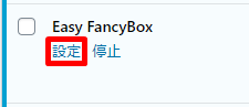 有効化が完了したら、Easy FancyBoxプラグインの設定をクリックします。