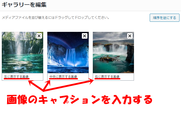 画像選択後、画像の下のスペースにキャプションを入力することで、画像にキャプションが表示されます。