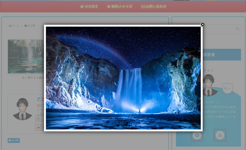 設定が正しければ、各サムネイル画像をクリックすると拡大ポップアップ表示が可能になります。