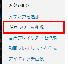 記事に挿入したい画像を選択し、ギャラリーを作成をクリックします。