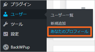 プラグインのインストール&有効化が完了したら、ダッシュボードの「ユーザー」の中にあるあなたのプロフィールをクリックします。