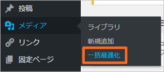• WordPress管理画面で「メディア」→「一括最適化」を選択します。