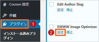 • ダッシュボードから「設定」→「EWWW Image Optimizer」を選択