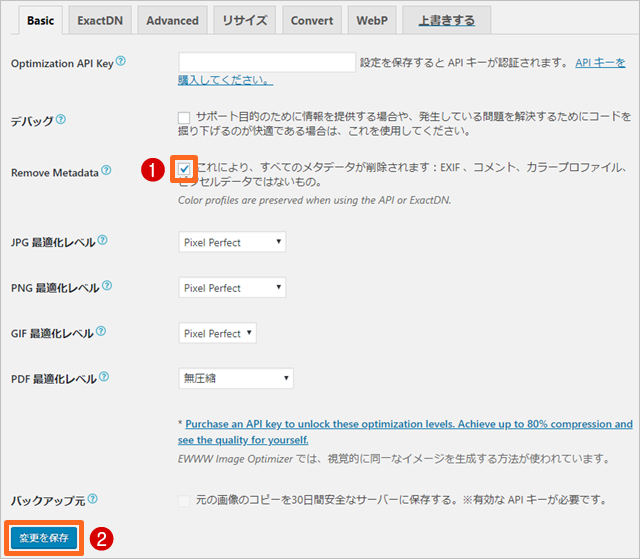 EWWW Image Optimizerでは、画像のメタデータをアップロード時に自動で削除することができます。