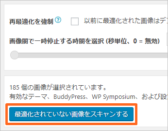 • 「最適化されていない画像をスキャン」をクリックして最適化対象を表示します。