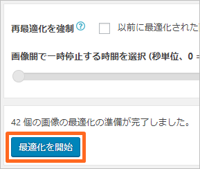 • 「最適化を開始」ボタンを押して手動で画像の最適化を行います。