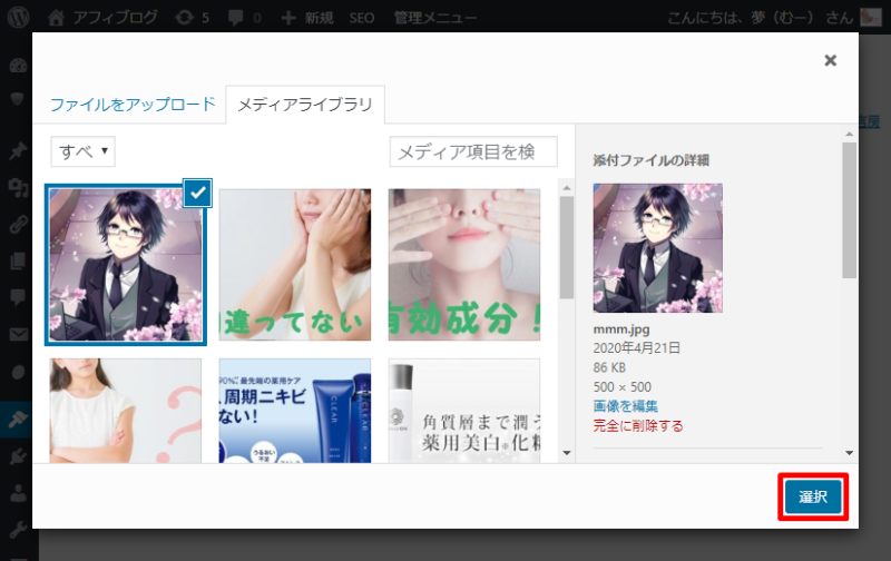 なお、画像は260×260ピクセル以上の正方形画像を使用してください。