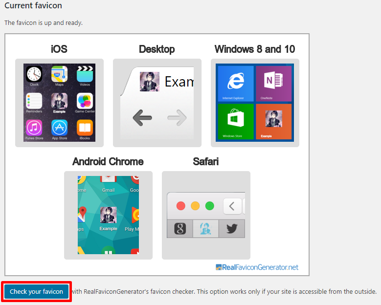 更に詳しくファビコンをチェックしたい場合には、Check your faviconをクリックすることで詳細に確認することが可能です。