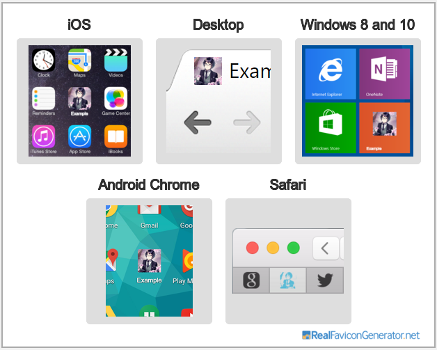 上記のようなサイズをカバーできる画像を準備しておくことで、RealFaviconGeneratorで自動的に最適化されます。