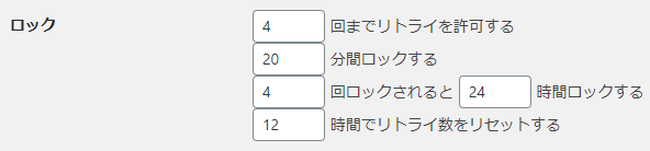 - 設定回数以上ログインに失敗したら20分間ロックする
