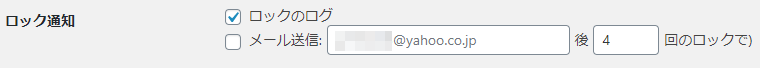「ロック通知」の項目では、ロックがかかったときにログを残すかどうか、メール送信をするかどうか、を設定できます。