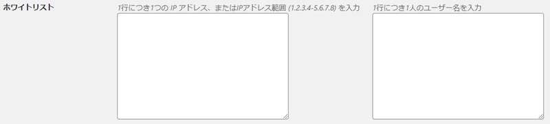 「ホワイトリスト」の項目では、IPアドレスを指定することでLimit Login Attempts Reloadedプラグインのロック機能を外すことが可能です。