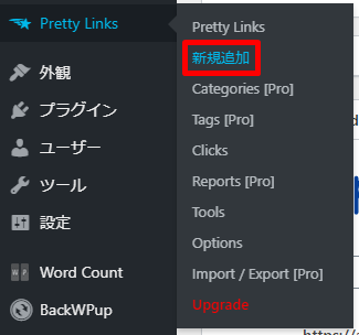 ダッシュボード内のPretty Linksをクリックしてみてください。