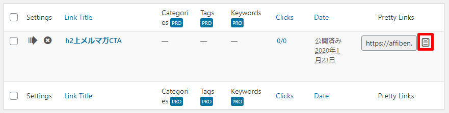 Pretty Linksで生成したリンクの設置