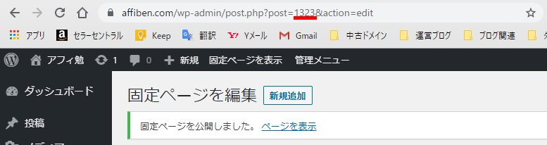 記事公開後のURL内のpost=の後の数字をメモしておきます。