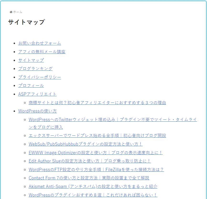 このようにブログのサイトマップが一覧表示されているはずです。