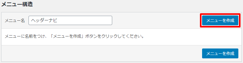 分かりやすいメニュー名を付け、メニューを作成をクリックします。