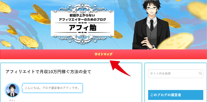 これでブログのヘッダー部分にサイトマップの設置が完了しました。