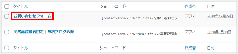画像認証を追加したいお問い合わせフォームを選択します。