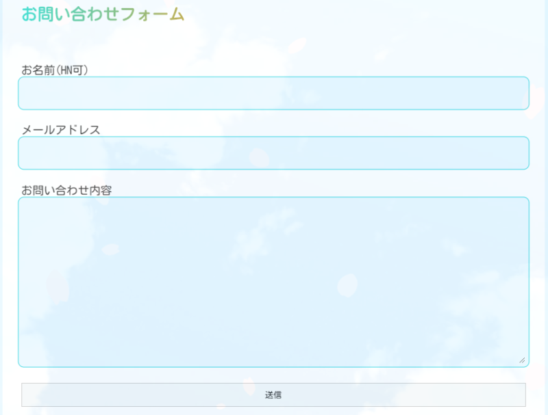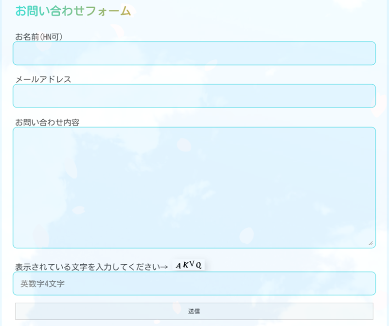 実際のお問い合わせフォームのページを確認してみましょう。← 現在は問い合わせフォームに画像認証を入れておりません