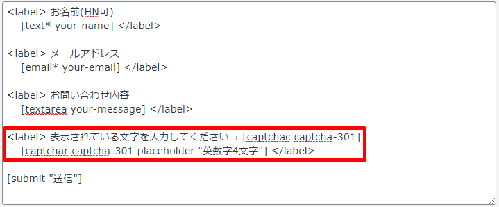 [captchar captcha-301 placeholder "英数字4文字"] </label>