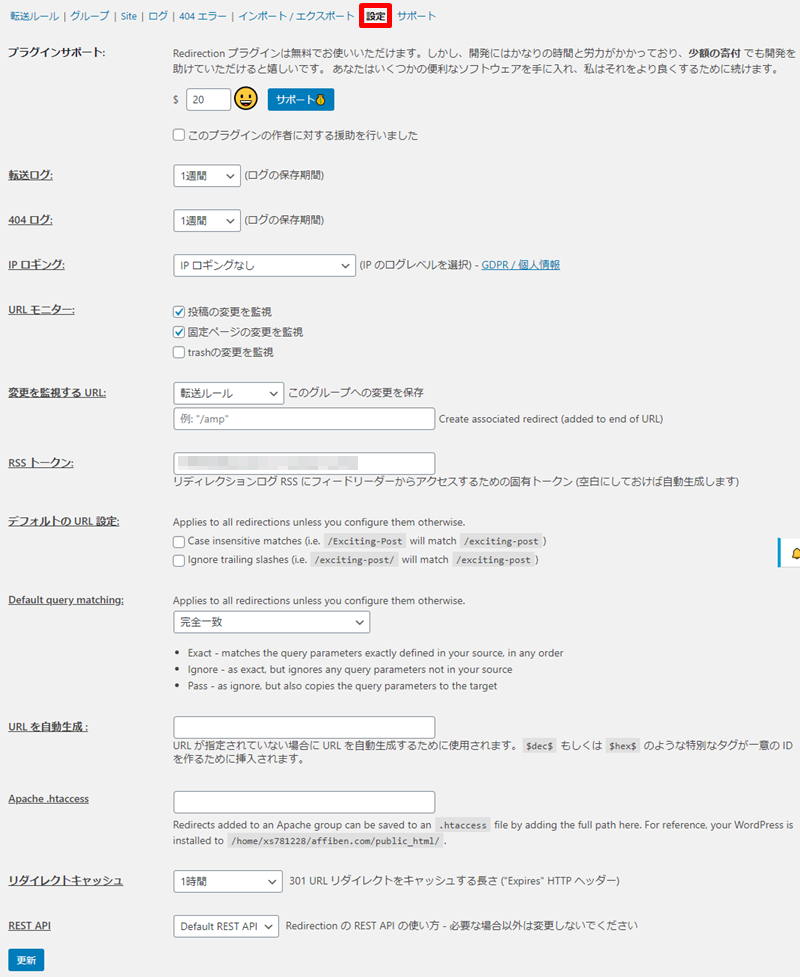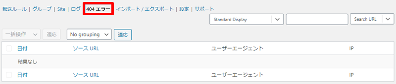 ⇒リダイレクト・404エラーのログ(履歴)を保存するかどうか