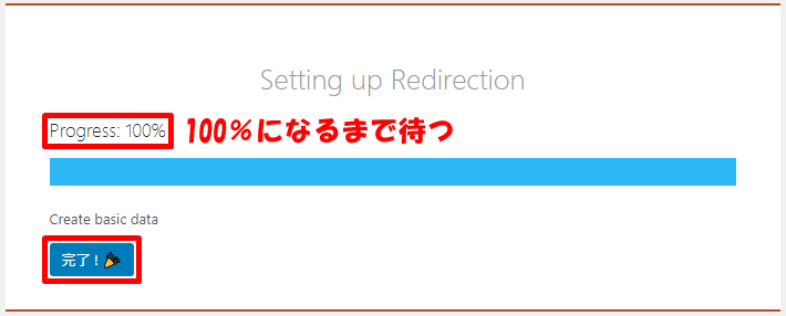Progress:が100%になるまで待ってから、完了!をクリックします。