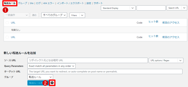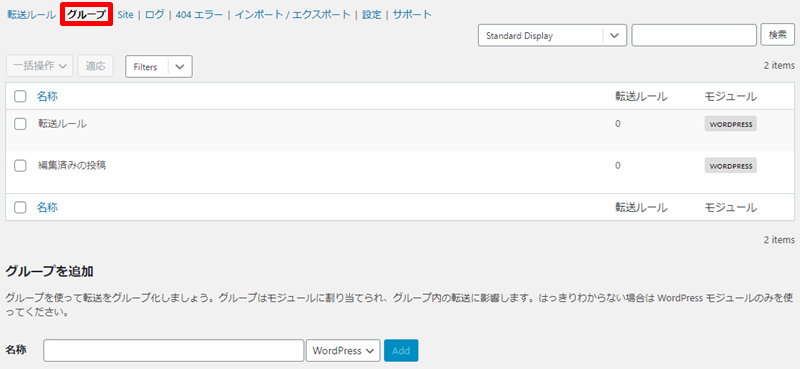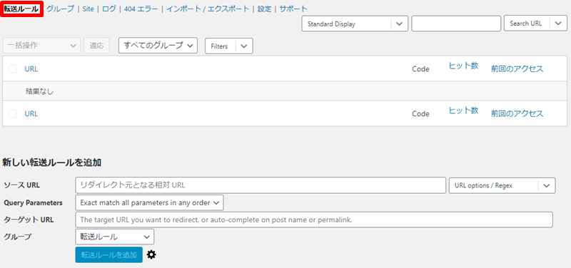 既存の転送ルールを変更したい場合は、Redirectionの管理画面でルール一覧を表示します。
